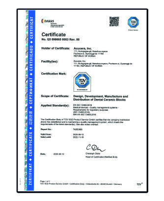 The First Korean Manufacturer of Zirconia in dental use with more than 20 years of manufacturing history
