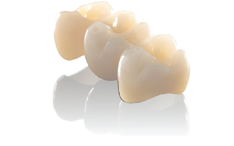Monolithic crowns are solid medical-grade zirconia restoration with no ceramic layering. They are designed specifically for the posterior teeth with more emphasis on strength, making them the ideal restoration for bruxers, implant restorations, and for areas with limited occlusal space. Crowns and Bridges with up to 4 units are possible.